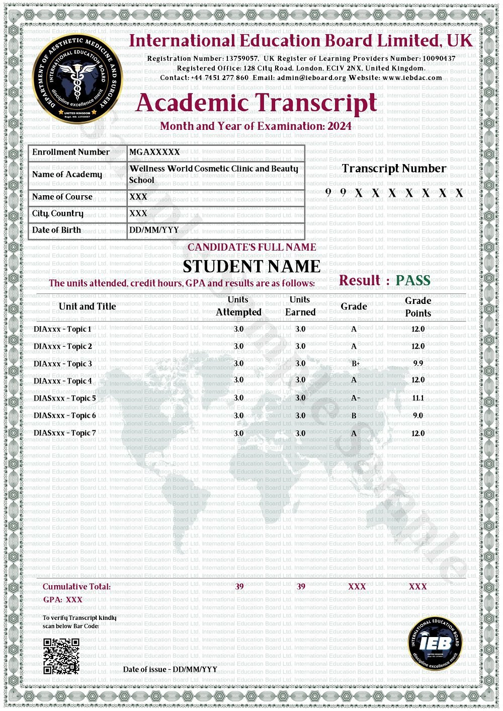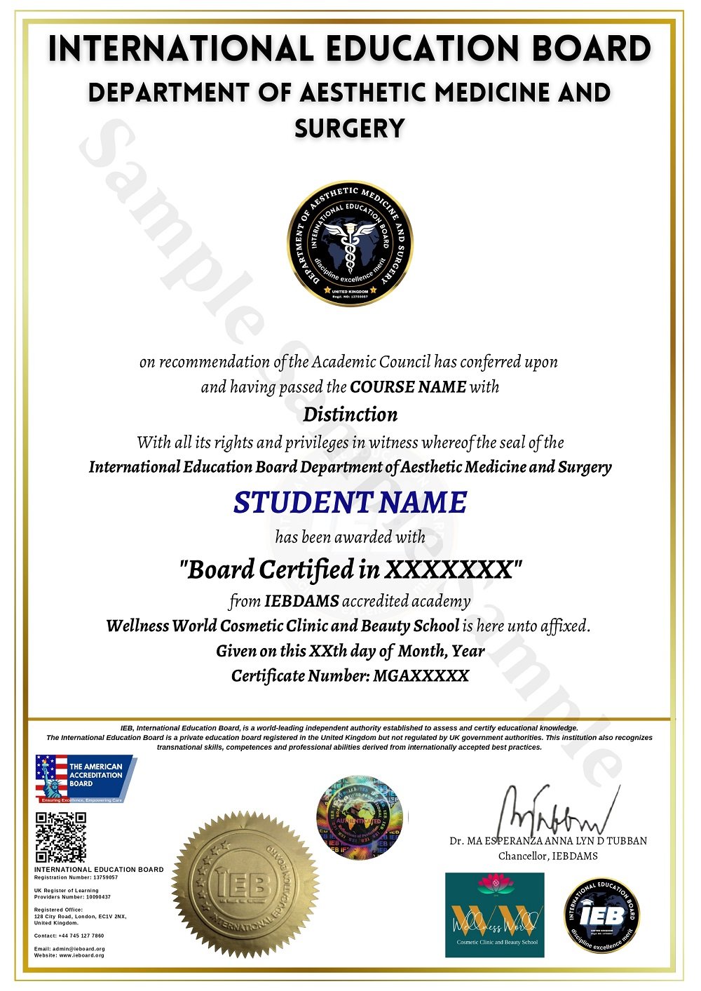 Diploma and Advanced Aesthetics programs endorsed by IEB-UK offer students global acceptance across the UK, USA, UAE and Asia.